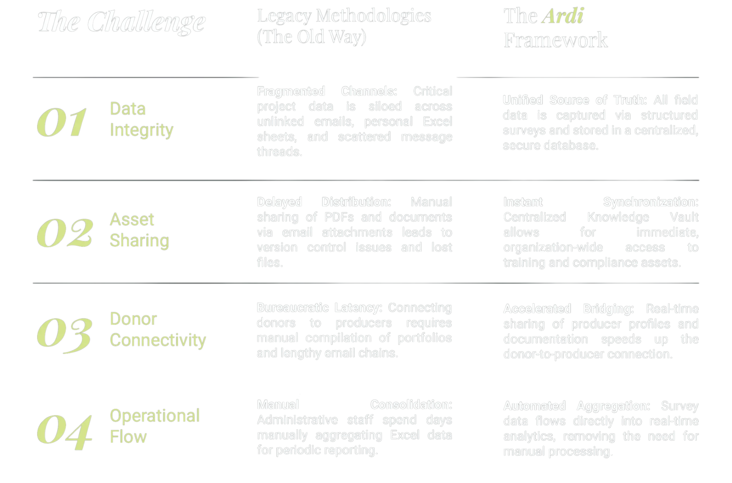 Bureaucratic Latency: Connecting donors to producers requires manual compilation of portfolios and lengthy email chains.